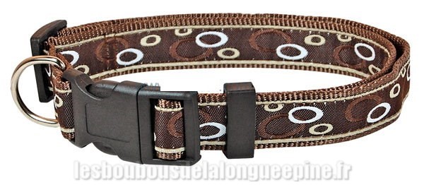 Collier nylon décor marron long 45cm à 70cm largeur 2,5cm