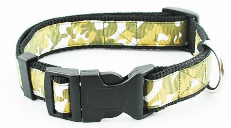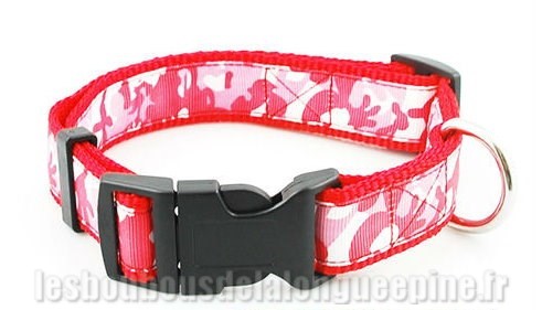 Collier nylon décor Cam long 38cm à 54cm largeur 2,5cm 2 couleurs rouge/vert