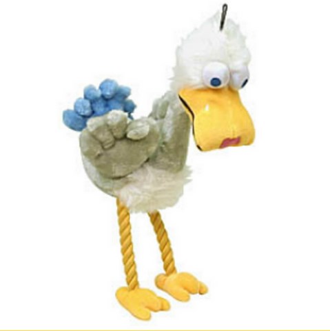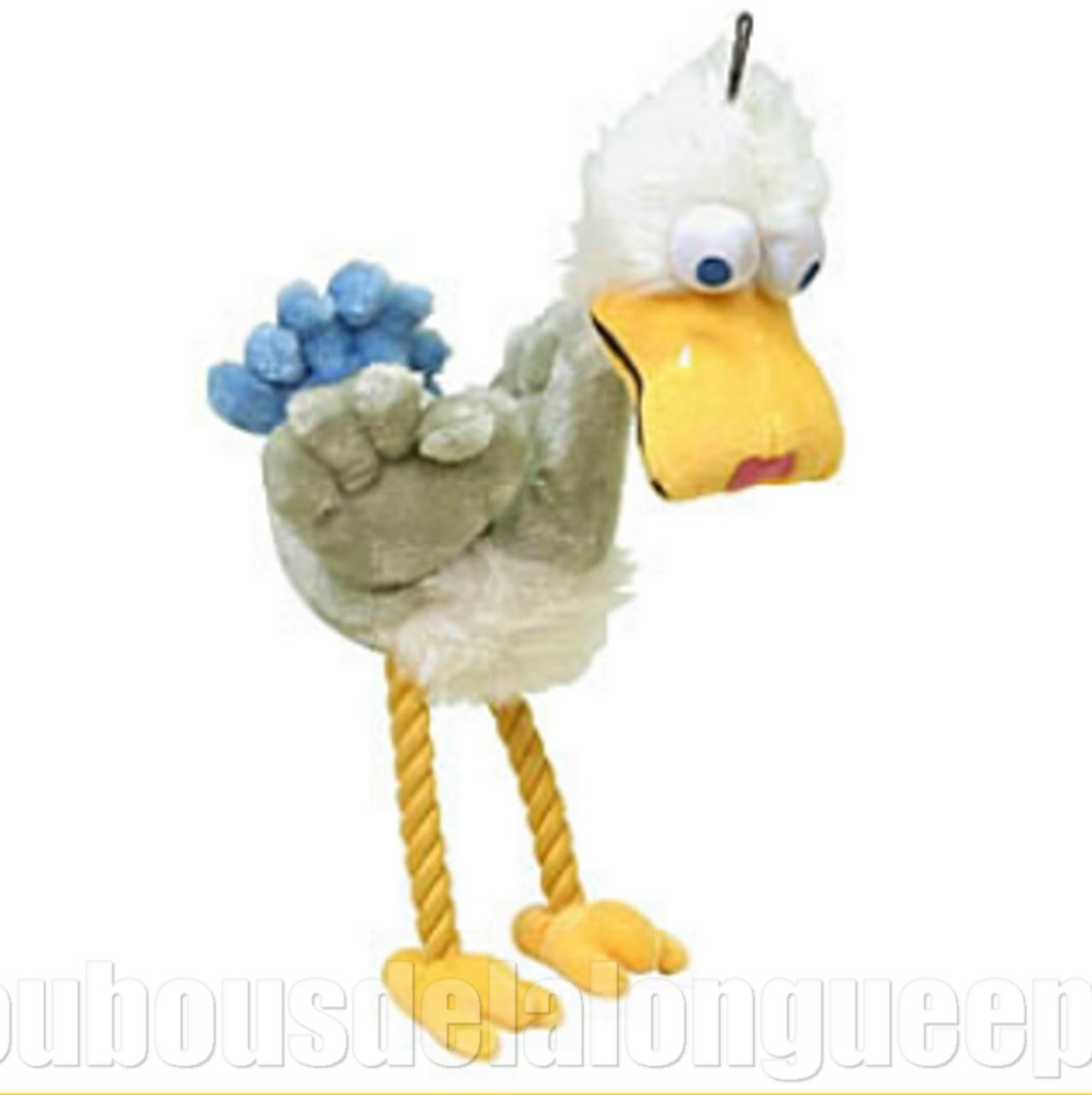 Autruche en peluche et corde, 45cm de haut , tres robuste et tres apréciée comme doudou.